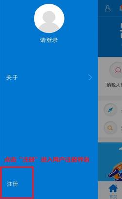 2、进入“广东国税”app,点击左上角图标,点击“注册”进入注册界面