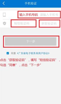 3、进入“手机验证”界面,输入手机号码,点击获取验证码,收到短信验证码后,输入短信验证码,点击下一步。