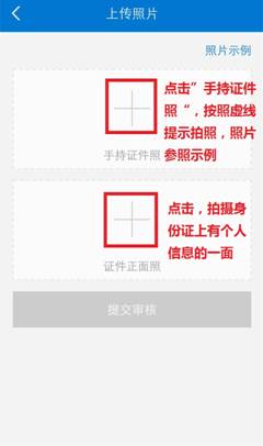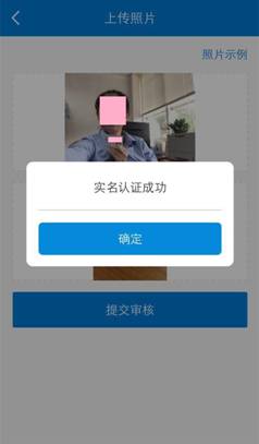 3、按照图示拍摄或上传两张照片,点击“提交审核”,提示“实名认证成功”。如提示不成功,重新拍摄清晰图片上传,多次上传仍不成功,可到国税前台办理。