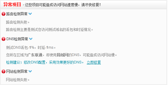 点击“立即测试”, 查看您的网络状况,如果出现如下图所示: