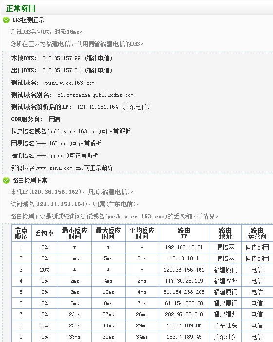 请及时联系官方工作人员,或者到CC官方房间11反馈测问题,我们的技术人员将会与您调试。如果所有项目都正常的话,网页会显示成如下: