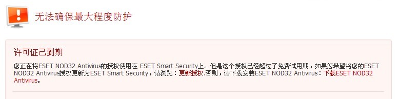 下面这步骤有一点重要.就是关于有些朋友说的换了用户名和密码后怎么nod32还是红色图标并提示许可证已过期的问题如下图所示