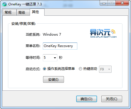 OneKey 一键还原 还支持设定密码保护,您的电脑您做主;支持设定开机热键启动,并可自定义热键(如:F11、F12等),定制自己的操作习惯,操作更加方便。