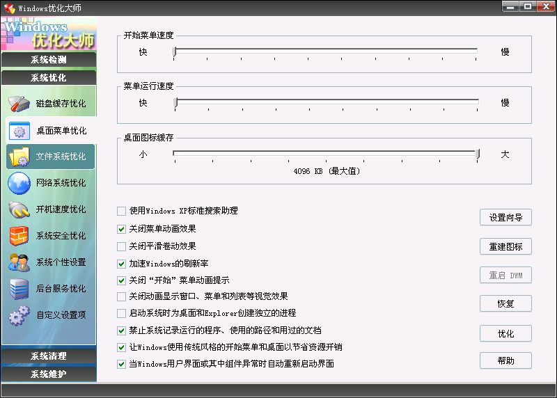 从系统信息检测到维护、从系统清理到流氓软件清除,Windows优化大师都为您提供比较全面的解决方案。