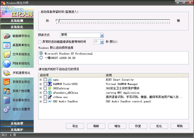 6、开机速度优化模块,调整部分品牌机自启动程序的识别