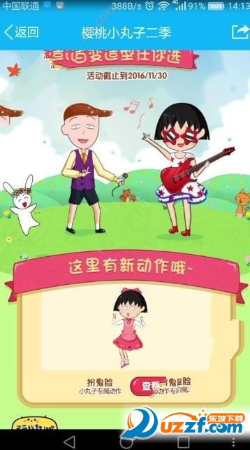 2、然后就会看到小丸子的新动作,查看详情进行领取即可