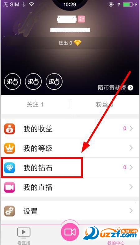 1、打开陌秀直播软件,在“我的中心”点击“我的钻石”按钮