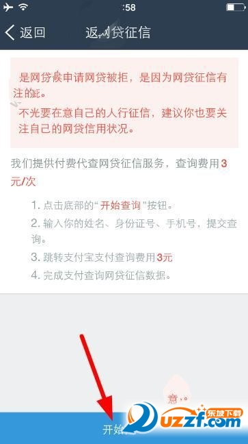 3、点击“网贷征信查询”,进入网贷征信页面后,点击下方的“开始查询”按钮即可