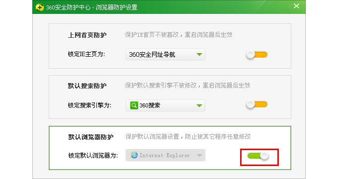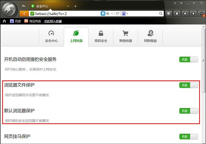 第二步:在安全中心页面—点击上网防御—检查浏览器保护是否是开启状态,如果是开启状态,请关闭后重新设置QQ浏览器为默认浏览器;