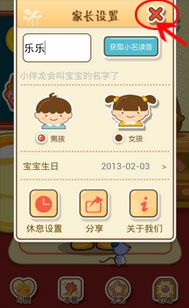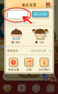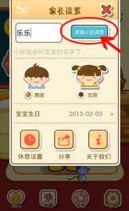 1.点小伴龙头顶(右上方)的齿轮图标可以进入“家长设置”。在“家长设置”里设置小名后,就可以让小伴龙叫出宝宝的小名。