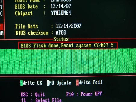 1-7. Update BIOS完成,询问是否要重开机:BIOS Flash done,Reset system (Y/N)? Y(按Y)
