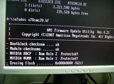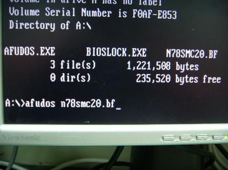 2-1. 执行afudos来update bios, 输入afudos 空一格 + BIOS完整檔名,按Enter 后执行