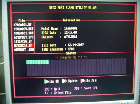 若Update过程中无当机、重开机后无错误讯息或无不正常开机现象,即完成Update BIOS