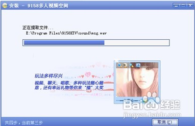 2、第一步 安装多人视频空间软件前必须确认显卡和摄像头驱动程序已经安装完成。双击9158多人视频空间安装文件,开始安装。