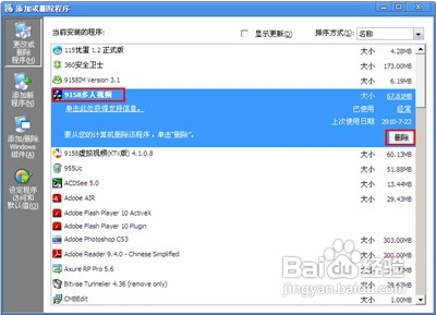 方法一: 在“开始”菜单的“程序”--“9158多人视频”--“卸载9158多人视频”,如图