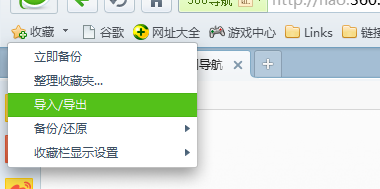 我们还可以将收藏夹导入导出以及进行一些设置。