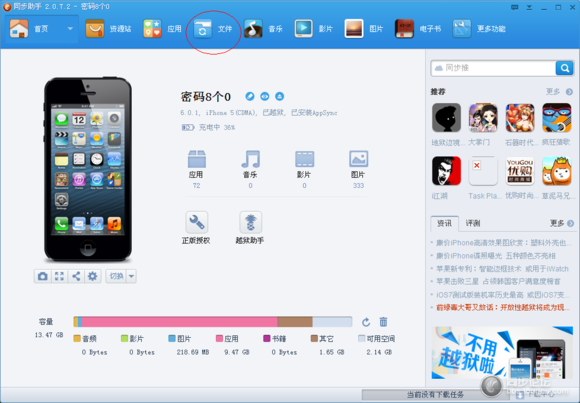 第一步:还是同上,打开同步助手,电脑连接数据线,打开如下图路径:
