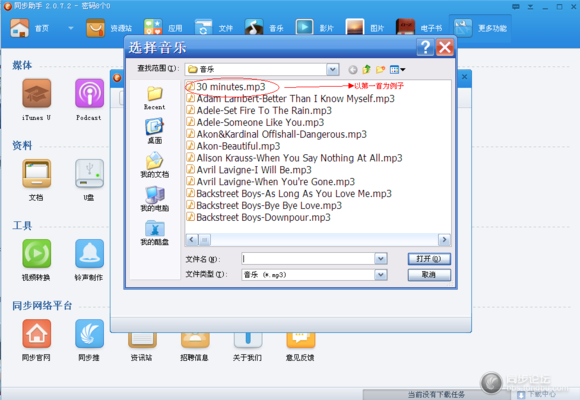 这里要注意一下(下图),因为不管你同步什么名称的音乐进去,系统都会自动给你修改名称,