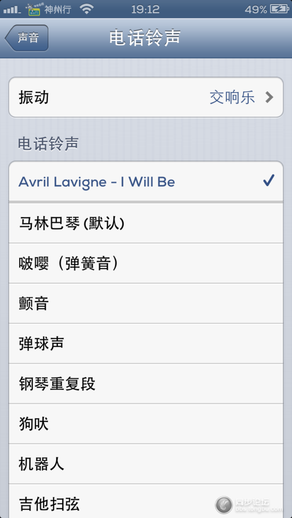 然后打开手机:通用--声音--电话铃声--打上勾,成功!!!