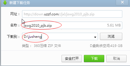 2 点击电信下载之后就会出现下面的对话框,大家记号名称与下载到哪,这样方便等会去解压,寻找,这是点击下载就好。