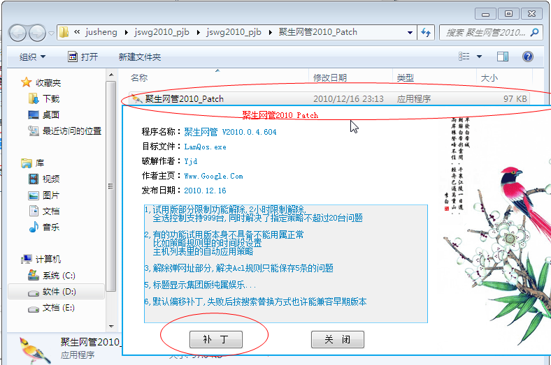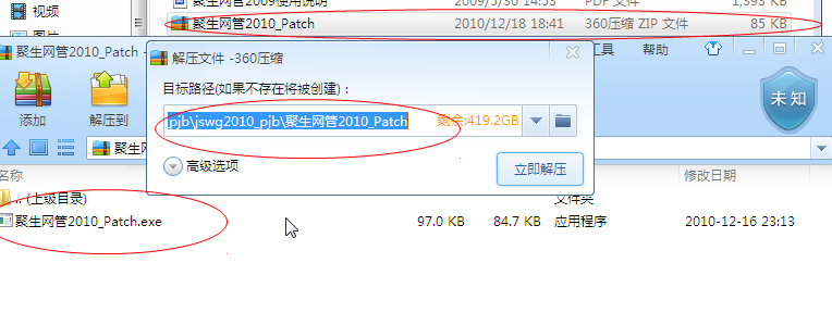 5 解压之后会出现聚生网管2010这样的文字,用鼠标左键双击,这样就出现了下面的对话框,在选择补丁按键,