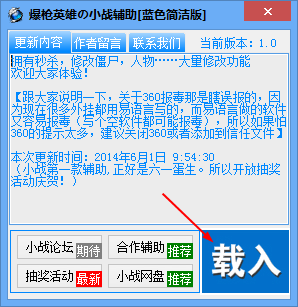 1、双击启动爆枪英雄小战修改器,等一会点击“载入”按钮