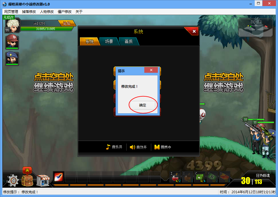 4、等待辅助提示修改完成后,选择退出关卡,然后重新进入关卡就可以了。