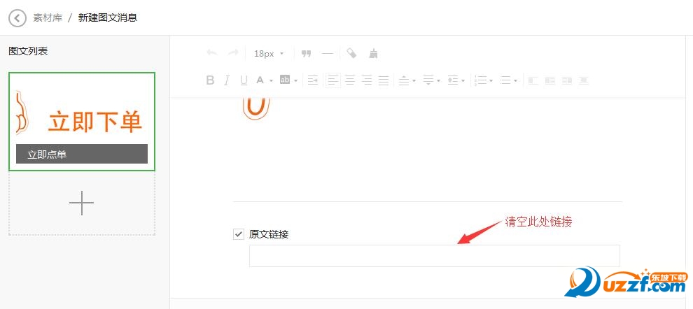 找到素材管理,修改立即下单的原文链接,如下图所示: