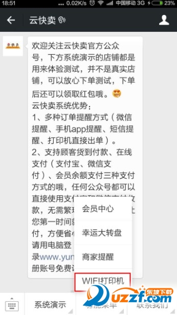 进入“云快卖”公众号,点击功能菜单,进入wifi打印机。
