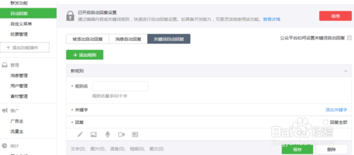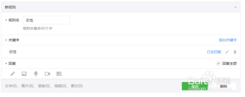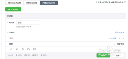 5、添加关键字 ,这里填的关键字是你想要别人发送给你的消息