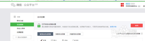 2、找到并点击自动回复,未开启的自动回复的点开启