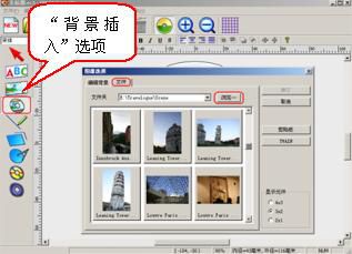 2、选择光盘背景:点击界面左侧工具栏中“背景插入”选项,进行背景图片的选择,如果您不想使用软件提供的背景,可以选择“文件”,通过“浏览”找到自己保存的图片作为背景,如图(3);