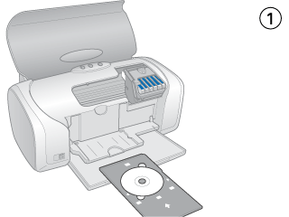 1、打开打印机电源,等打印机开机动作结束后,向上抬起打印机机盖,放下光盘导轨,如图(1);