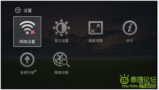 3.进入设置后,选到以太网选项,可以看到右上角显示开关按钮是打开的,这时,选择关闭,再选择打开,操作一次。按遥控器返回键,再按主页键退出,看看是不是恢复了。