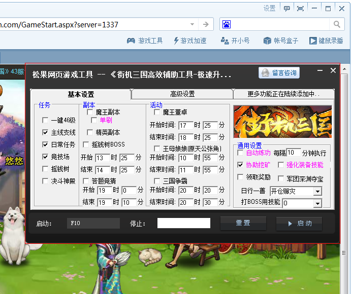 特别注意:启动工具时,请保证浏览器窗口为最大化状态,且鼠标指针放置在游戏界面上,否则会出现坐标越界等问题。
