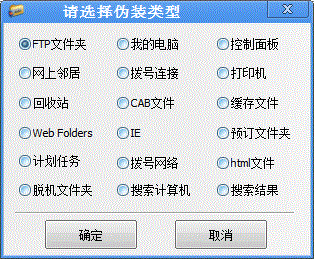 3 选择文件夹后,选择文件夹要伪装的类型,有多种文件夹伪装可以选择,如果你选择了控制面板,文件夹打开看到的就是控制面板里面的内容。
