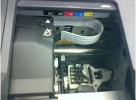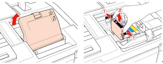 1、打开墨盒舱盖,取出达到使用寿命的墨盒,如图(4);