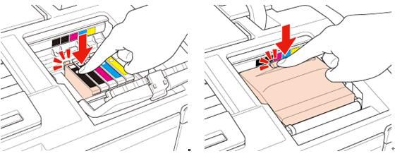 提示:如果有多个墨盒达到使用寿命,按墨水键,墨尽标志的“箭头”会分别指向需要更换的墨盒。