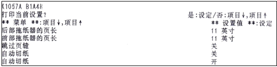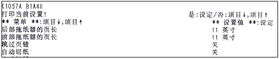 4. 确定是否需要打印打印机的当前缺省设定值:这时,打印机会打印出一条信息(如图二),询问是否打印当前设置。