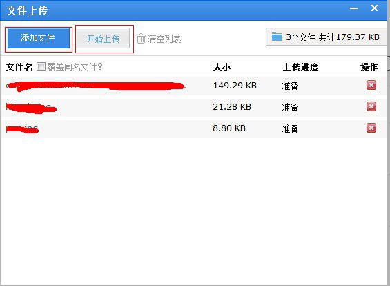 按钮,可以删除单个准备上传的文件。