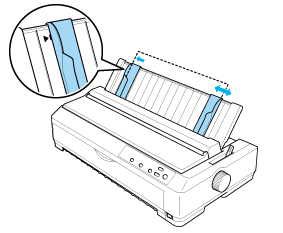 3、当使用单页纸进纸时,需要将纸张靠在导纸器上标有三角箭头的位置进纸。(下图以LQ-630K和LQ-1600KIIIH打印机为例,其它机型请参考打印机随机光盘中的用户手册)如图(2)。