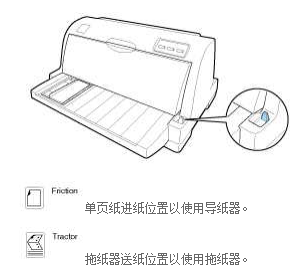 大部分爱普生针式打印机都带有“过纸控制杆”用于选择打印机使用的进纸方式,通俗地说就是用来选择单页纸进纸还是连续纸进纸。(下图以LQ-630K和LQ-1600KIIIH打印机为例,其它机型请参考打印机随机光盘中的用户手册)