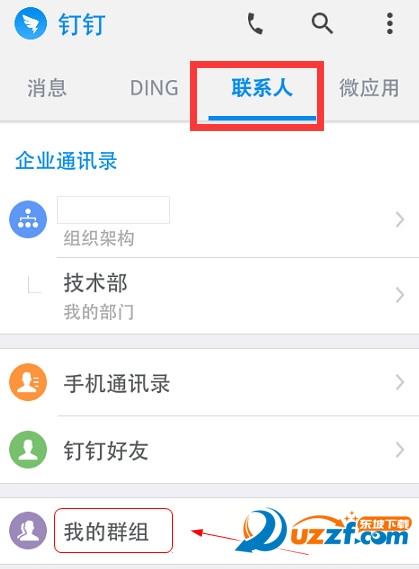 1)首先点击打开【钉钉】,在【联系人】界面点击【我的群组】;