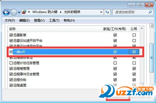 然后在打开的新界面中,找到“一键WiFi”并进行勾选其中的两项(公网和私网),点击“确定”完成设置。