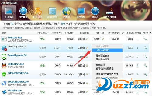 还有一种导致“一键WiFi”所创建的WiFi无法正常连接的原因是某此杀毒软件对“一键WiFi”进程进行“禁止联网”操作造成的,对此找到“一键WiFi”进程名“BDAEesyWiFi.exe”进程,设置“允许使用网络”项即可。