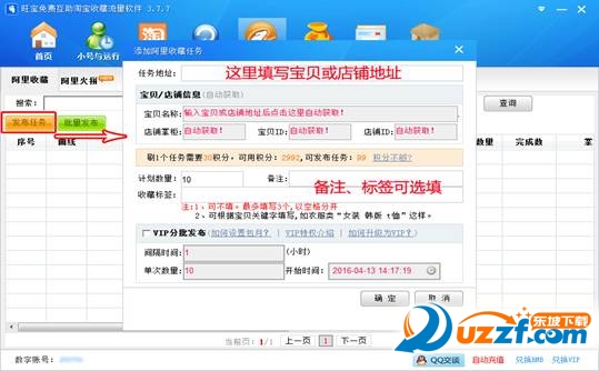 这里,我们只需输入正确的宝贝或店铺地址,相关的信息就会自动获取出来,计划数量一定要填写10个以上,备注和标题可选填。如果是vip用户的话,还可以使用“vip分批发布”功能,可设置“间隔时间”、“单次数量”、“开始时间”,还可以进行“批量发布”噢。