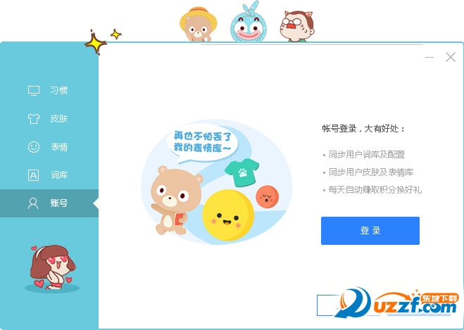 6、最后登录百度账号,可以同步用户词库、同步表情库、赚取积分等。