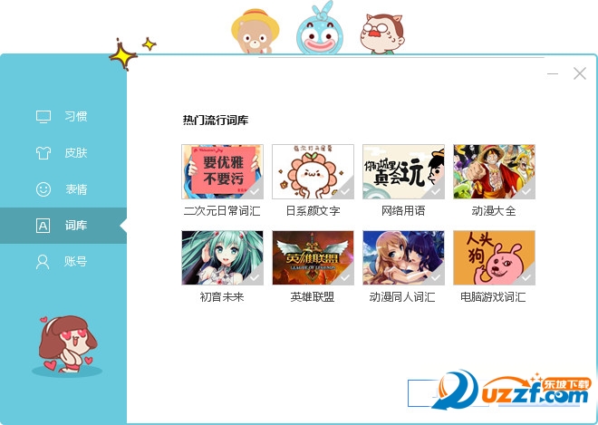 5、设置热门流行词库,包括二次元日常词汇,网络用语等;