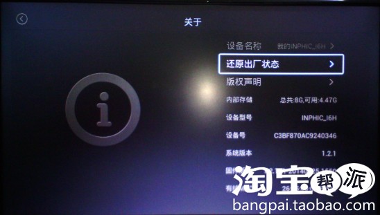 进行清除数据恢复界面。恢复完成后会重新开机,在恢复过程中不要断电,让机顶盒自动完成。进入主页面