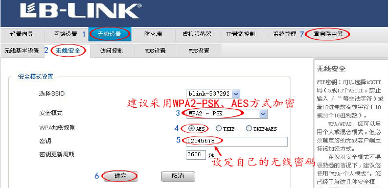 4、设置WPA2-PSK密码连接,尽量将密码设置得复杂点,可以夹杂大小写、标点符号等,如图2所示: